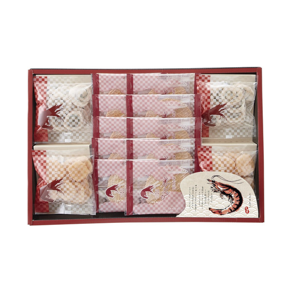 華やかなパッケージに詰められたえびせんのギフトセットです。海老の風味がたっぷりと詰まったえびせんは、お茶請けにも最適です。