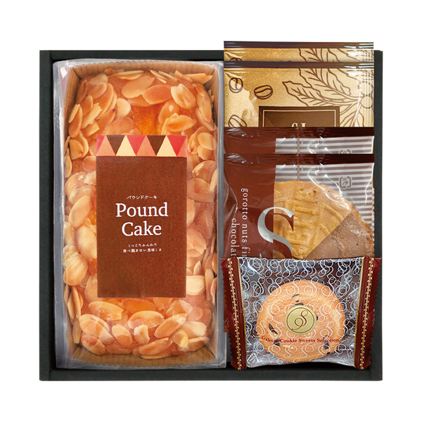 ローストしたアーモンドを食べやすくスライスして、ケーキの表面に散りばめ、香ばしくふっくり仕上げたアーモンドパウンドケーキとドリップコーヒーのセットです。