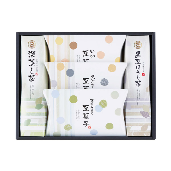 静岡茶と豆菓子のセットです。お茶の風味と豆菓子の食感が楽しめる贅沢な詰合せです。