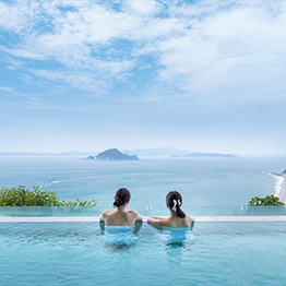 天空露天風呂や足湯と、様々なお風呂を満喫していただけます。四季折々の三河湾を眺めながらのんびりお過ごしください。
