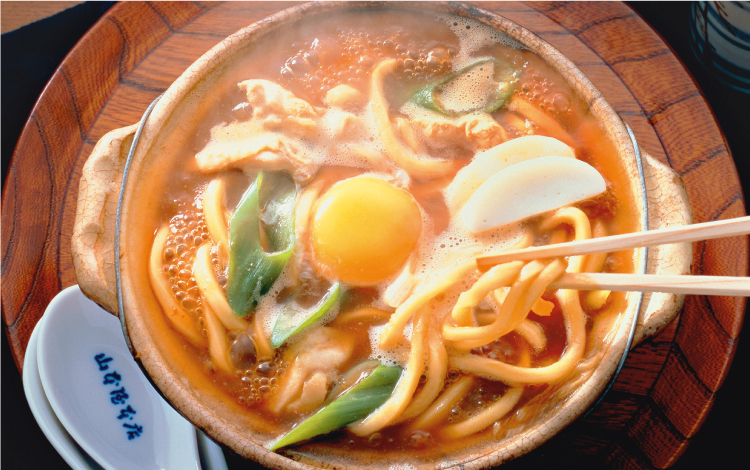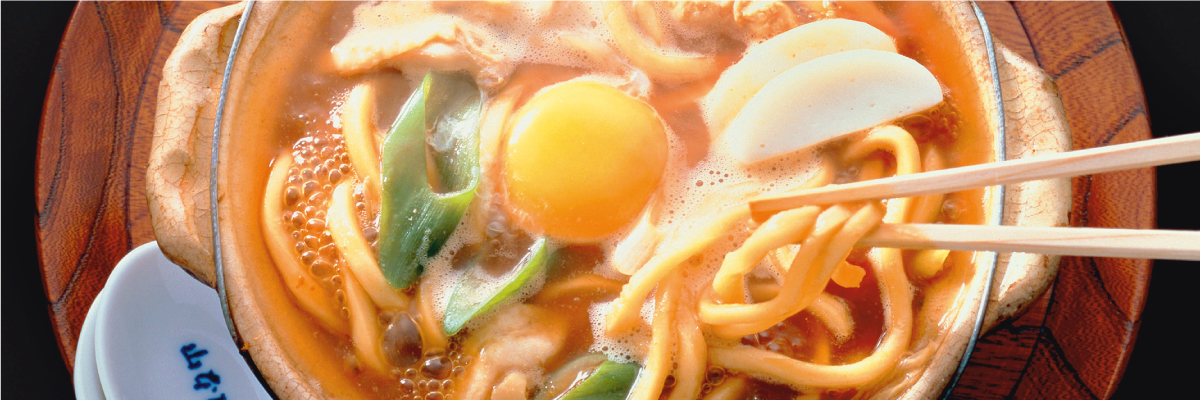 味噌煮込みうどん味噌煮込みうどん一筋、110余年。守り伝える「味」と「心」。山本屋本店独特のコシのある食感のめんとあじ味噌のセットです。