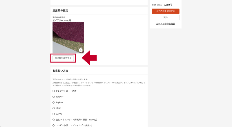 - 風呂敷の種類は、カート画面の「ラッピング」欄からお選びいただけます。