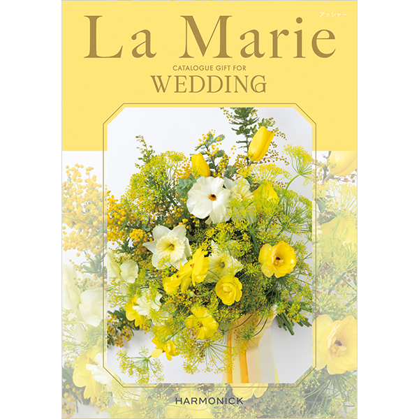 「ラ・マリエ アッシャー」は、結婚関連の贈り物として定評のあるカタログです。華やかさと落ち着きが共存した表紙は、結婚式の引き出物や内祝いにぴったり。中身もブランド品やスイーツ、生活雑貨が豊富で、男女問わず喜ばれる内容となっています。