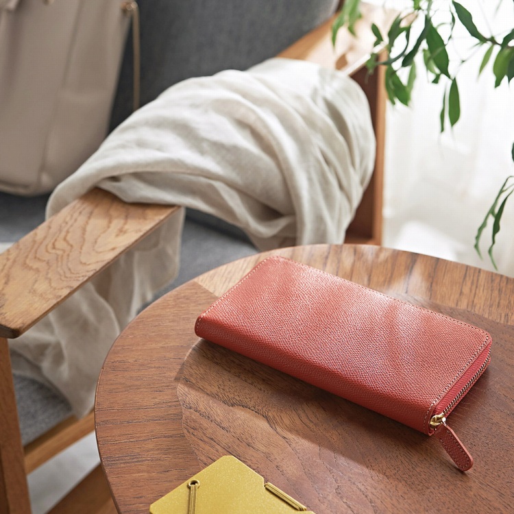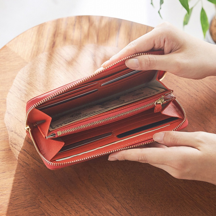 発色の良いオレンジが鮮やかなラウンドウォレット。