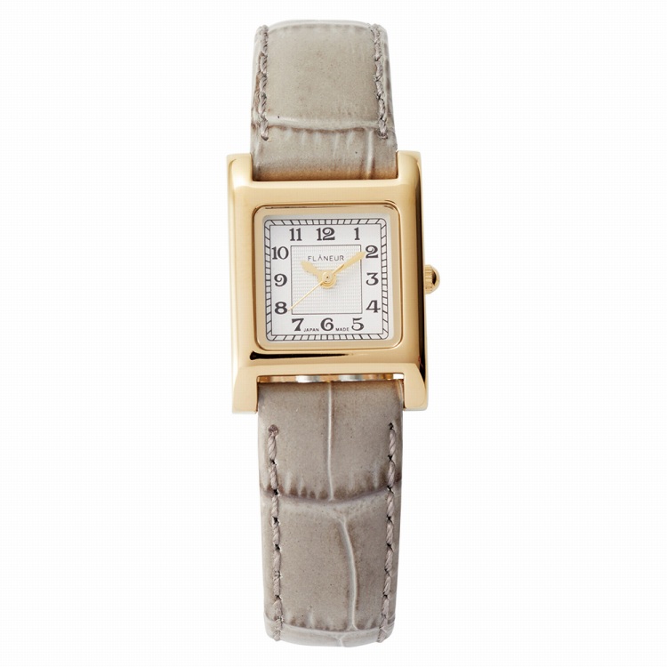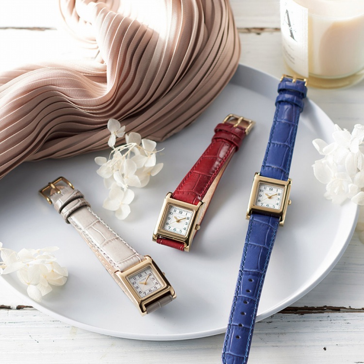 見やすいスクエアタイプの文字盤を使用し、上品でベーシックなデザインの腕時計です。