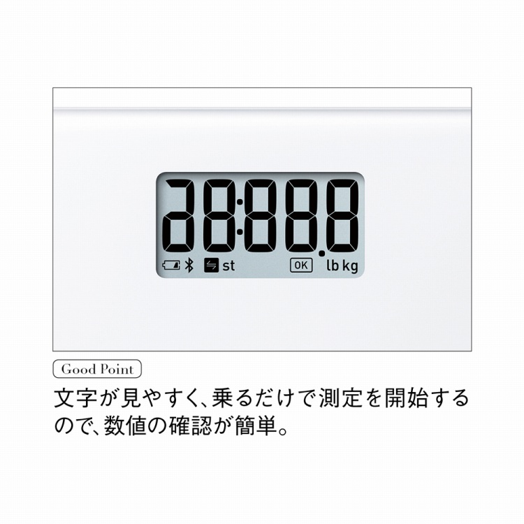 ●機能:体重、データ通信、30回メモリ(「OMRON connect」アプリでのみ表示)