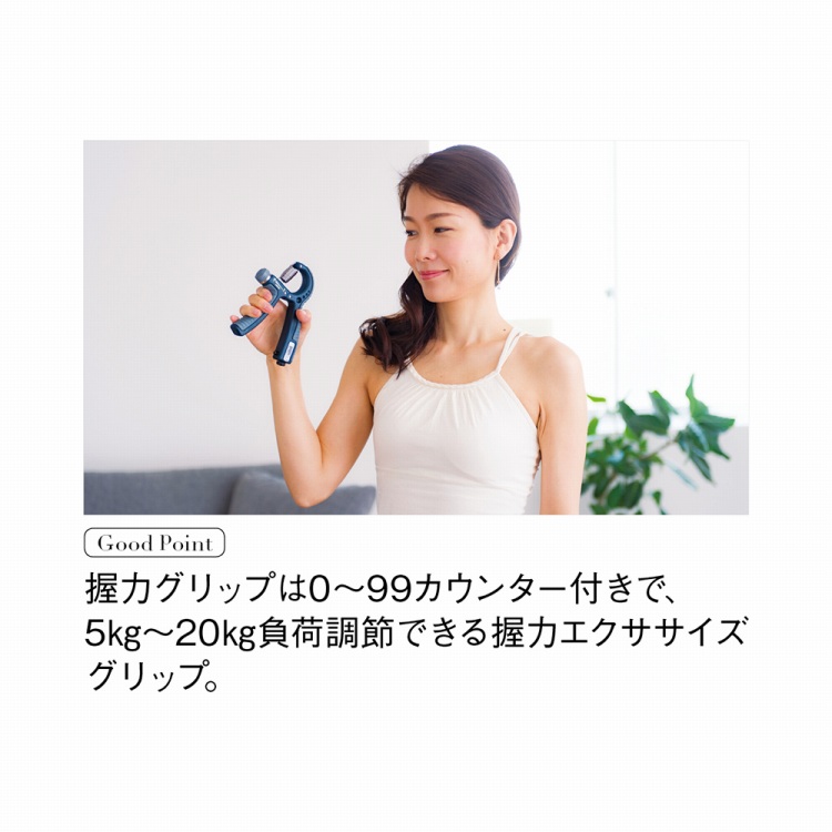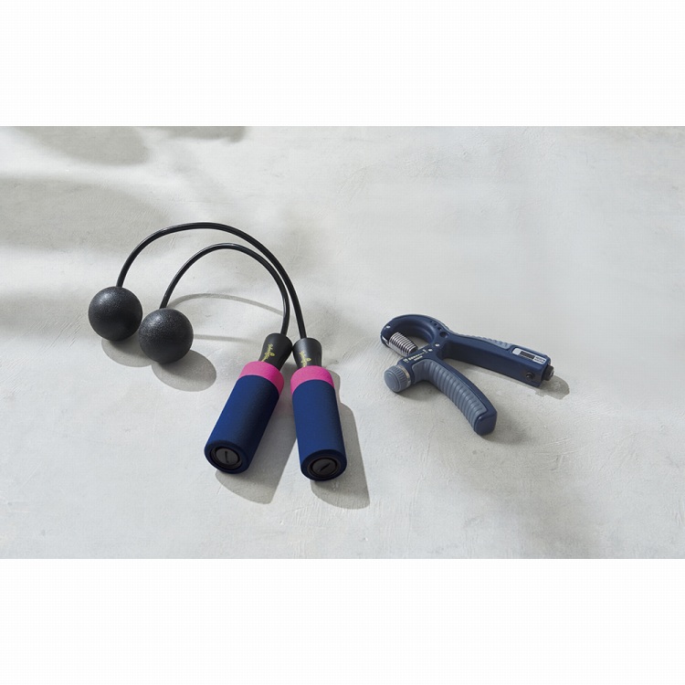 高速回転ベアリングで2重跳びもできる、有酸素運動をしたい方におすすめなエア縄跳びと、ダイヤルをまわすだけで負荷調整できるエクササイズグリップのセットです。