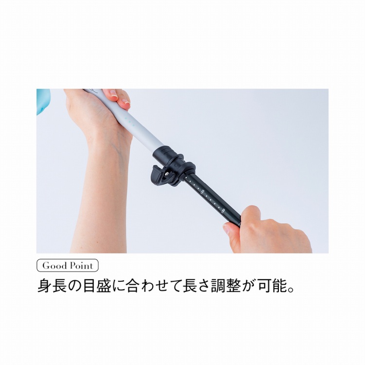 初心者向けのウォークポールで、長さは身長目盛に合わせるだけなので簡単に調整できます。