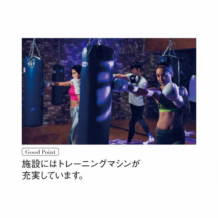 マシンジムでの筋力トレーニング、スタジオレッスンでは非日常を感じられる暗闇ボクシングやトランポリン、ヨガなどをお楽しみいただけます。