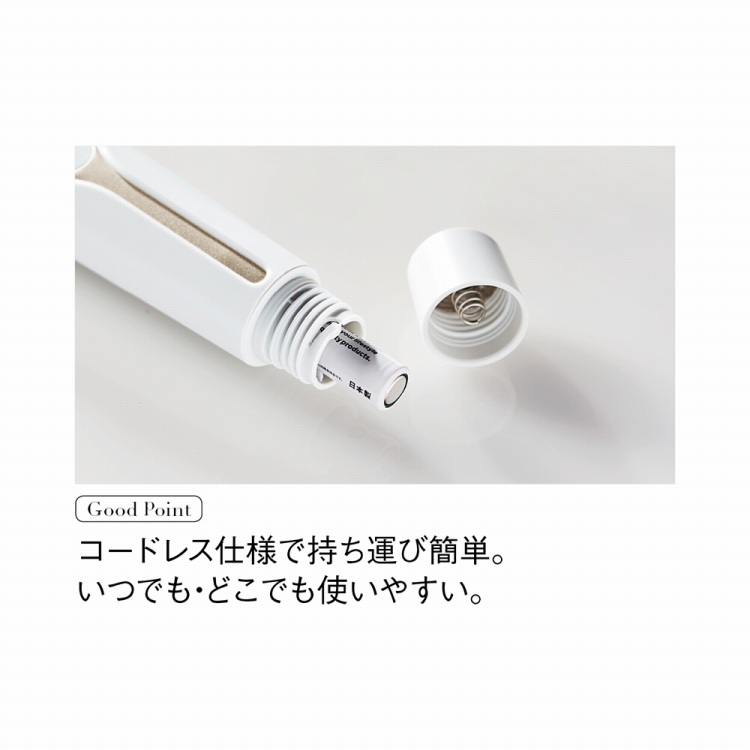 また、乾電池式のコードレスに加え、収納ポーチ付きで持ち運びに便利です。