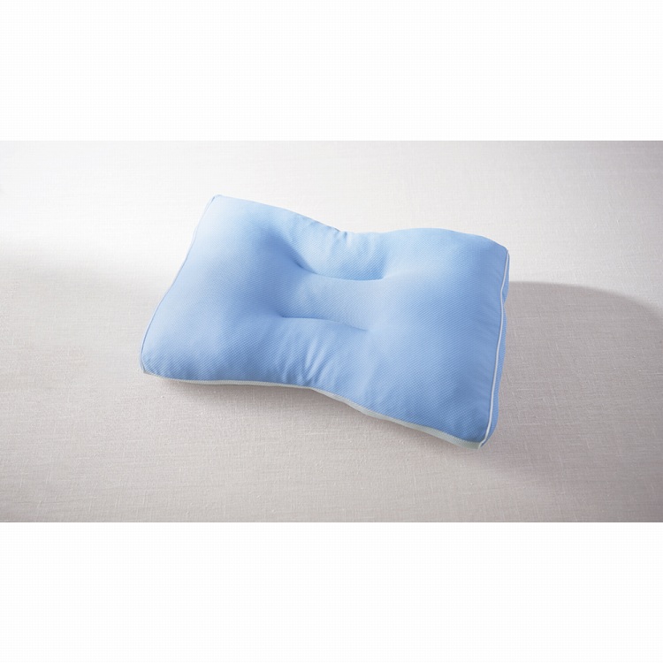 中央にくぼみがあって頭にフィットしやすく、仰向け寝、横向き寝どちらにも対応。