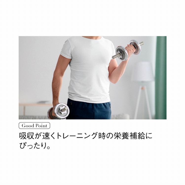 吸収が速くトレーニング時の栄養補給にぴったり。