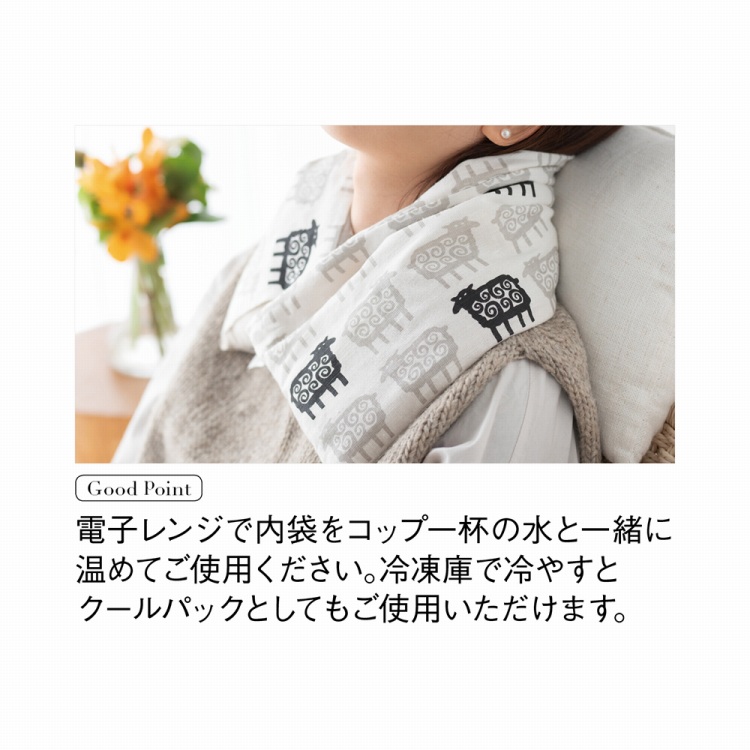 ネックピローは、パックを電子レンジで温めれば、温感パックや湯たんぽとして、冷凍庫で冷やせば、暑い時の熱さましやリフレッシュにお使いいただけます。