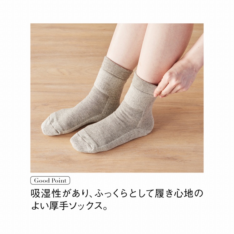 ヤク混のコットン糸を使用した厚手ソックスを組み合わせ、通年ご使用いただけるくつろぎのセットになりました。
