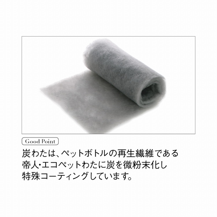 炭には脱臭のほかに、湿度調節の特性があるので寝汗をすばやく吸収し、余分な湿気を逃します。