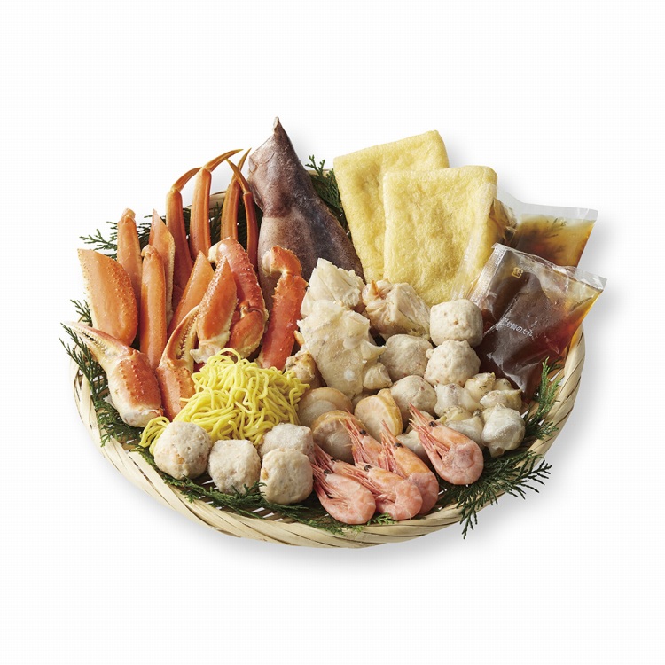 商品内容●セット内容:ボイルズワイガニカット400g×1、ボイル甘えび×6、ボイル帆立×3、つみれ(かに入・えび入各4)、油揚げ×2、ツボ抜するめいか100g・ボイルつぶ貝60g・ラーメン80g各1、たれ付