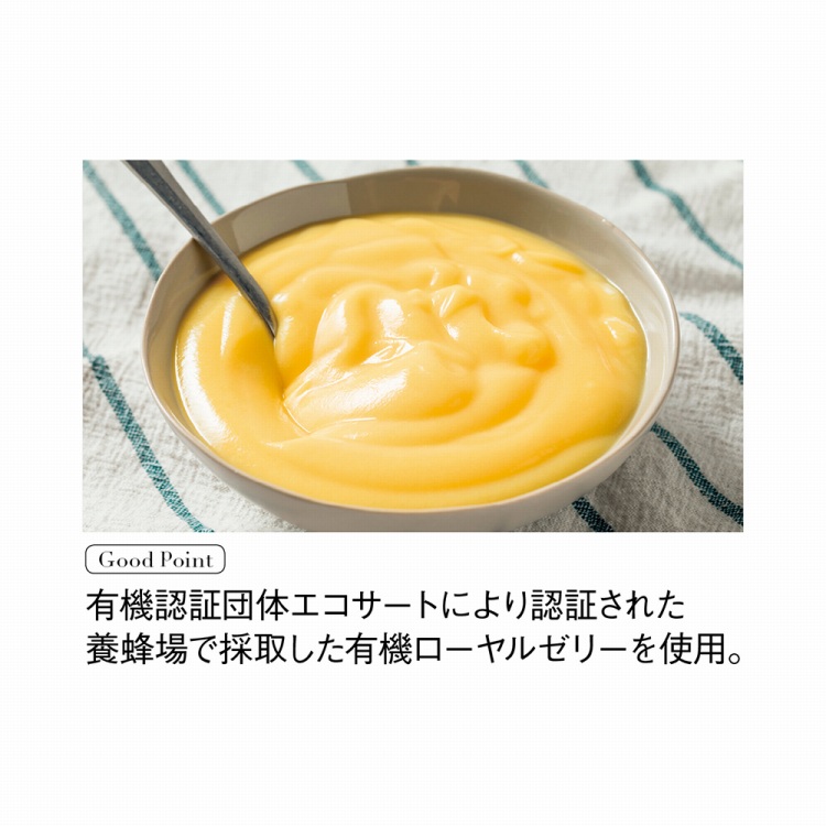 本品1カプセル中に生ローヤルゼリー換算で1000mg相当量を含有し、ローヤルゼリーの品質が低下しないようプロポリスも加えています。