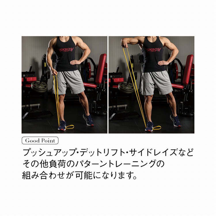 ダンベルの代わりに自宅で本格的なトレーニングを可能にするボディメイクバンド。