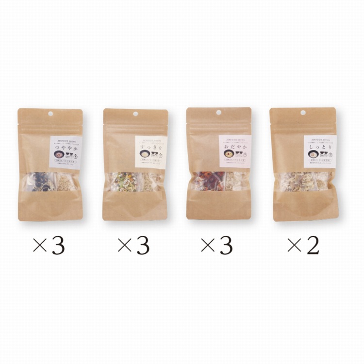 薬膳の基本となる、「陰陽五行/肝・心・脾・肺・腎」の考え方を基に、乾燥野菜と玄米を合わせたおかゆキットです。