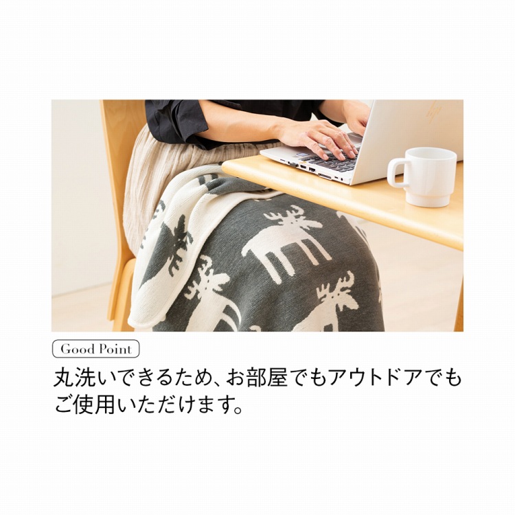 オーガニックコットンのシュニール糸を使用したブランケットは、ふんわりとやわらかな肌触りで洗濯機で丸洗いでき、お手入れも簡単。