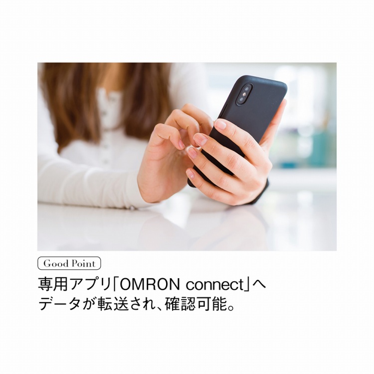 また、Bluetooth通信機能を搭載しており、スマートフォンアプリ「OMRON connect」に測定データの転送を行い、体重や体脂肪率、骨格筋率などのデータを簡単に確認・管理することができます。