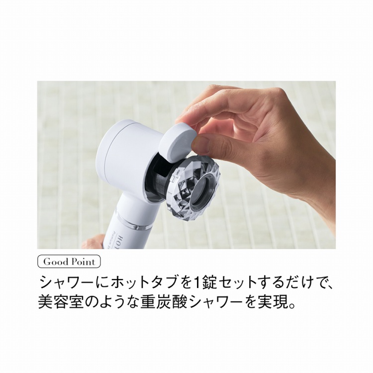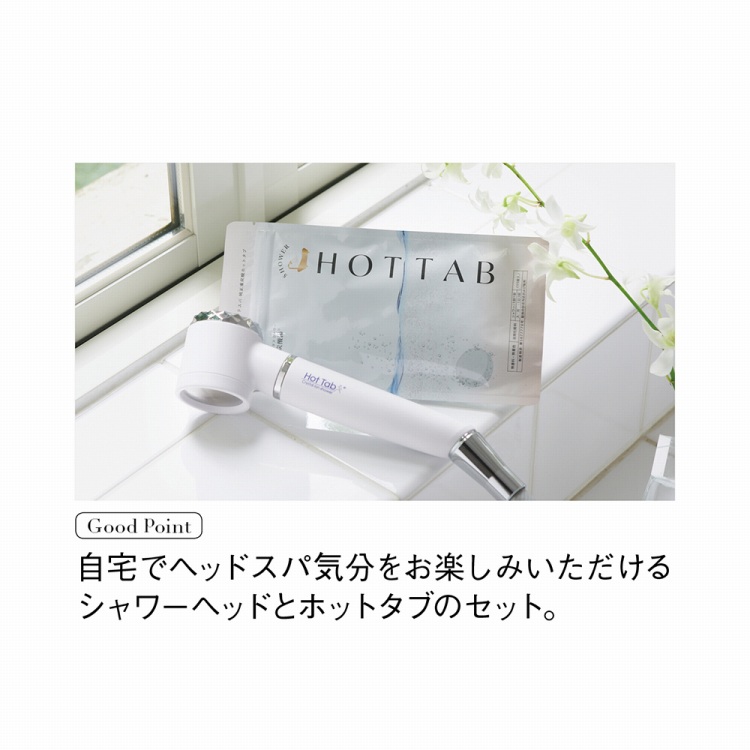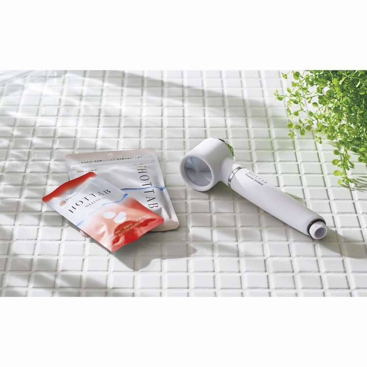 商品内容●商品:シャワーヘッド(約径5.2×長さ20.2×奥13.3cm)×1、HOT TAB SHOWER(9錠入)×2、薬用 HOT TAB WELLNESS(医薬部外品・3錠入)×1