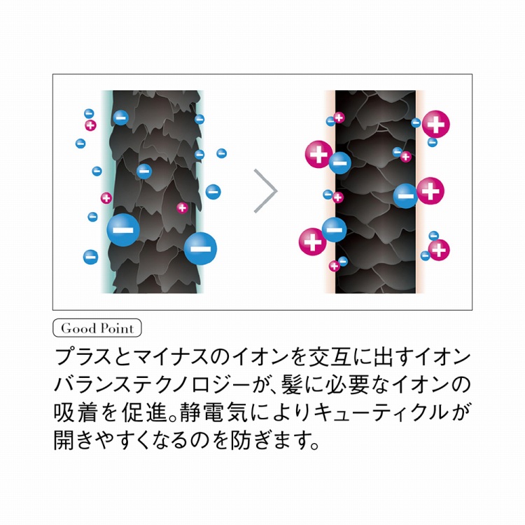 イオンバランステクノロジー搭載で、髪をケアしながらヘアドライ。