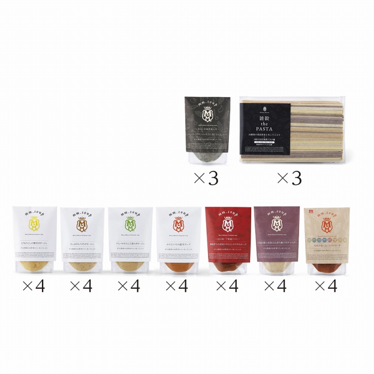 商品内容●セット内容:潮風育ちの垢田トマトとトラフグのスープ180g・九州を食べるミネストローネ180g・広島牡蠣と淡路玉ねぎの瀬戸内チャウダー180g・たっぷりキノコのポタージュ180g・アスパラガスと玉葱のポタージュ180g・とうもろこしの贅沢ポタージュ180g・エビとトマトの濃厚スープ180g各4、ふっくらミヤギシロメ大豆と黒ごま豆乳スープ180g・雑穀パスタ160g各3