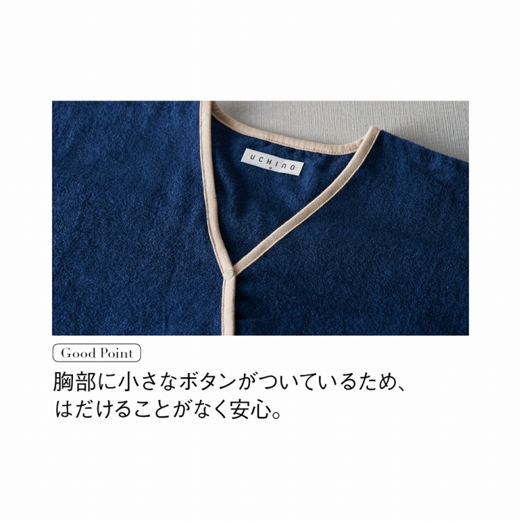 バスローブは二次発汗の汗を効率良く吸収しながら衣服内の温度と湿度を保ちます。