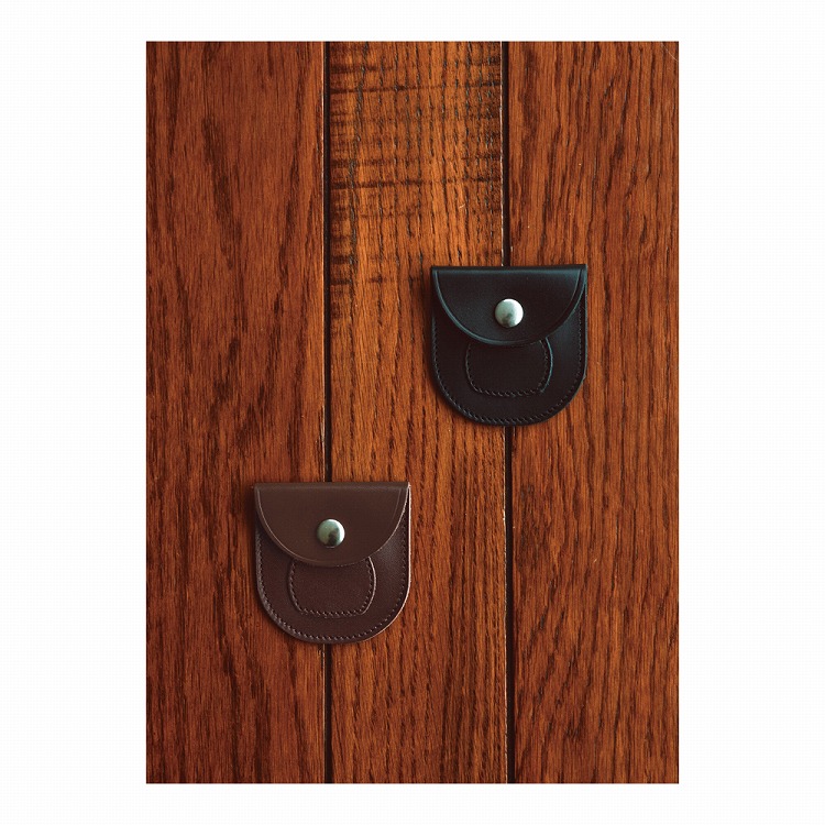 植物性タンニンでなめした栃木県産のヌメ革を使用し、円形で薄めのデザインのレザーコインケースはパンツのポケットや小さなバッグにもスマートに収まる絶妙なサイジングを追求。