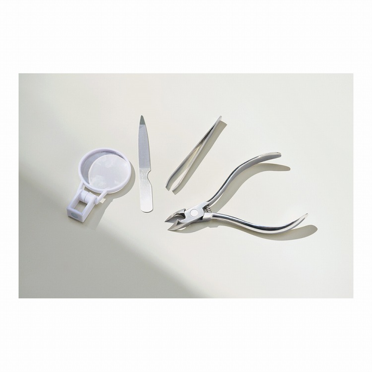 商品内容●商品:つめ切り(全長約11cm)・つめヤスリ(全長約10.3cm)・レンズ(約4×1.5×長さ7cm)・毛抜き(全長約9cm)各1