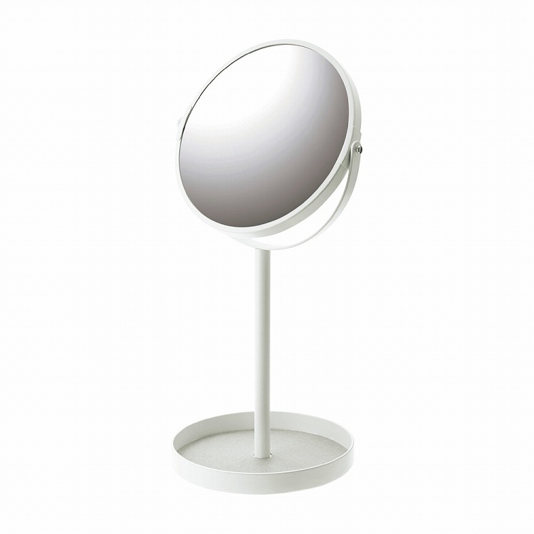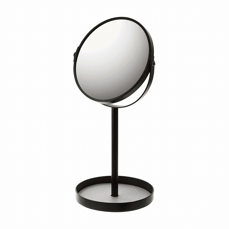 ディスプレイ感覚で収納できて、コスメ・指輪・ピアスなど小物を置けるトレイが付いていて、平面と拡大の両面鏡なのでとても便利。