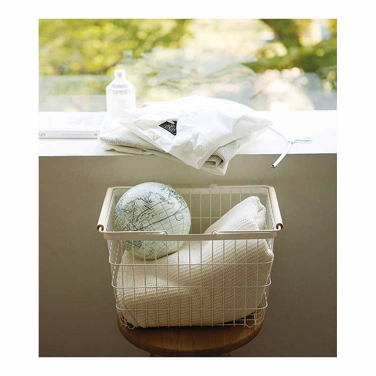 ウッドとスチールの組み合わせが美しく、シンプルかつインテリアとしてもかわいいこのバスケットは洗濯後の濡れた衣類を入れても安心の丈夫さも合わせ持ってます。