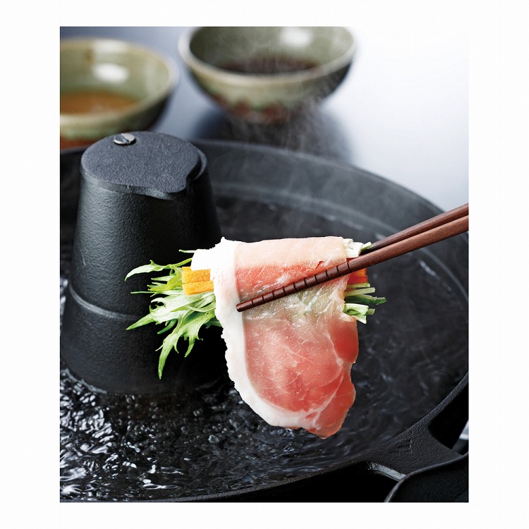 鍋に水、酒、だし昆布を適量入れ加熱し、肉をくぐらせタレにつけて食べる。