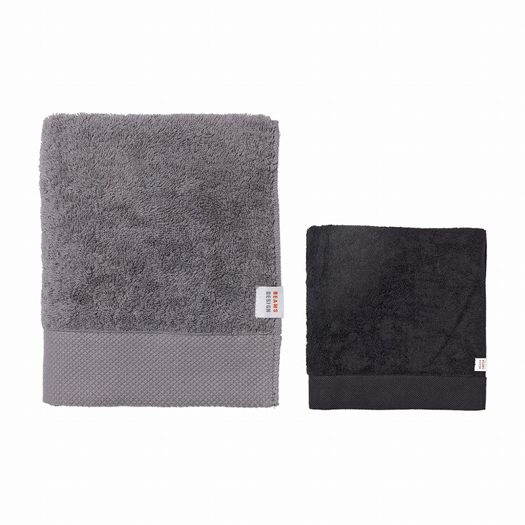 ベーシックな無地のカラータオルに「BEAMS DESIGN」のワンポイントロゴネームを付けた、シンプルなデザイン。