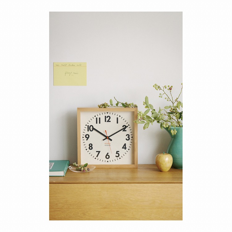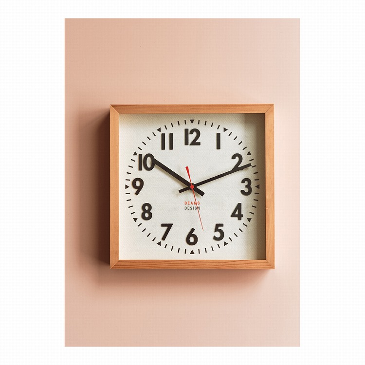 読みやすい立体的な数字とオレンジの秒針が特徴的な掛時計。