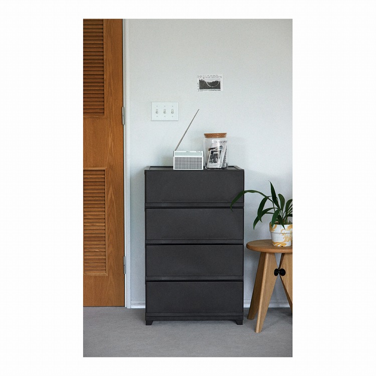 1段あたりYシャツなら約8枚収納できるワイドタイプの引き出しケース。