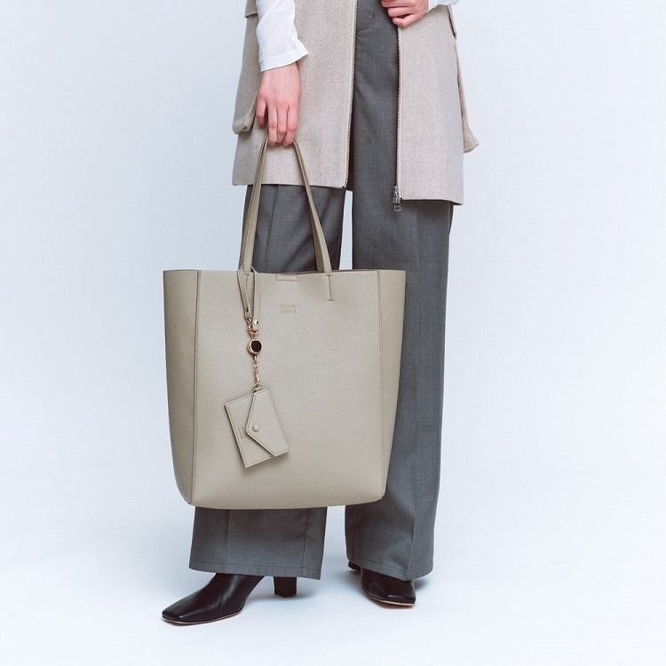 通勤に便利な大容量のトートバッグは、ポケットがないシンプルな仕様。