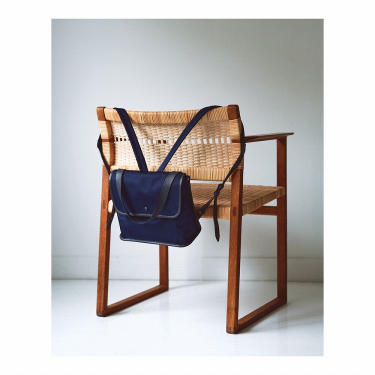 「BEAMS DESIGN」のためにアレンジされたこのモデルは、裏面にPVC加工を施した適度にハリ感のあるナイロンと、イタリア製のシボ感のあるレザーの組み合わせが印象的。