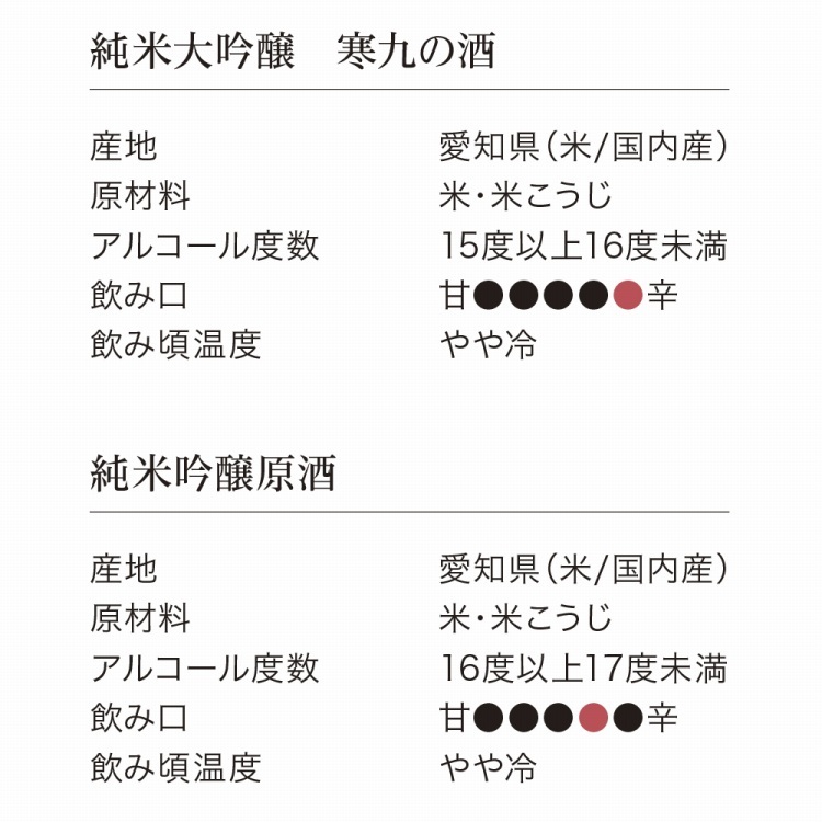商品内容●セット内容:純米大吟醸 寒九の酒1.8L、純米吟醸原酒1.8L