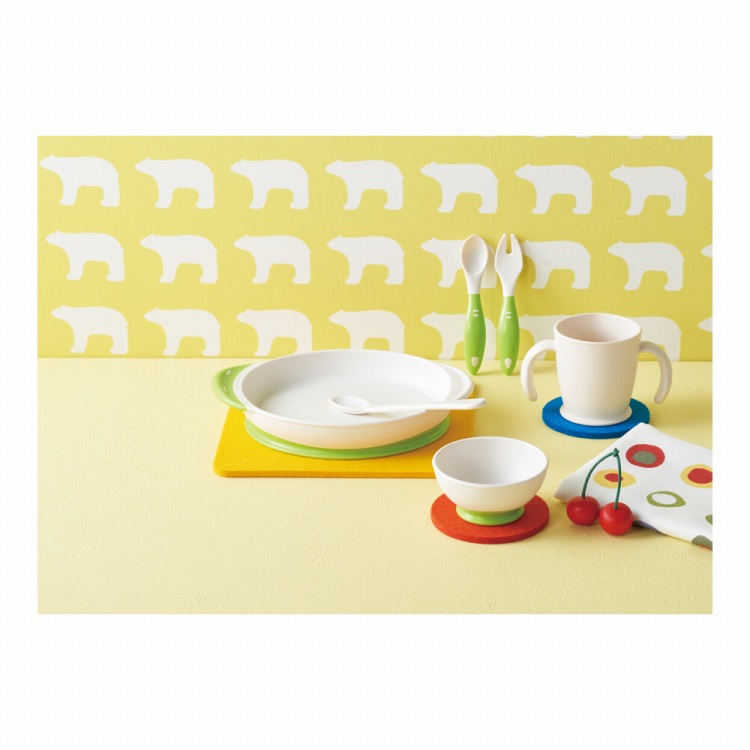 商品内容●商品:キッズプレート(約21.6×17.8×高さ3.5cm)・茶碗(約径8.8×高さ4.6cm)・すり鉢(約11×15.6×高さ5.3cm)・スープマグ(約12×7.1×高さ7.6cm・190ml)・こし網(約径11.2×高さ1.2cm)・調理ヘラ・マッシャースプーン・スプーン・フォーク各1