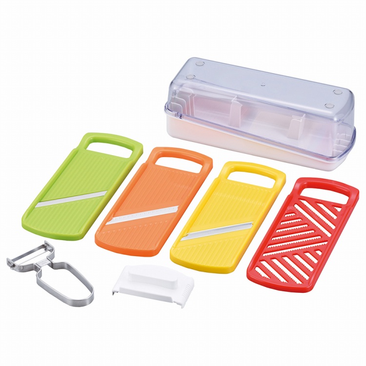 商品内容●商品:収納ケース(約8.5×23.5×高さ8.8cm)・調理板(スライス・おろし・千切り・つま切り)・ピーラー・ホルダー各1