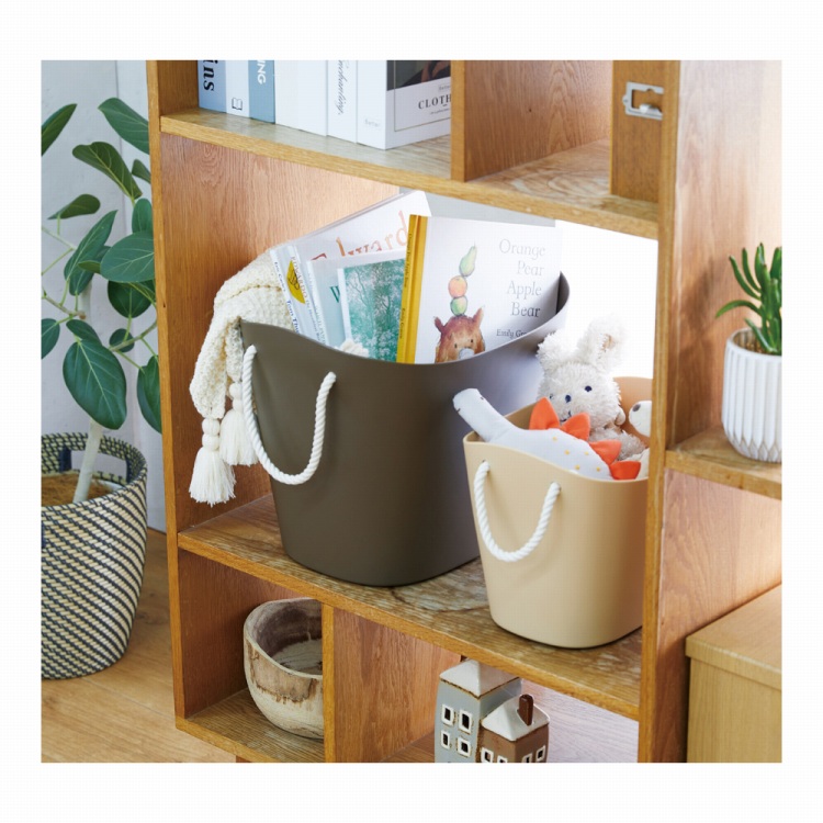やわらか素材でラウンドフォルムがかわいい収納バスケット。