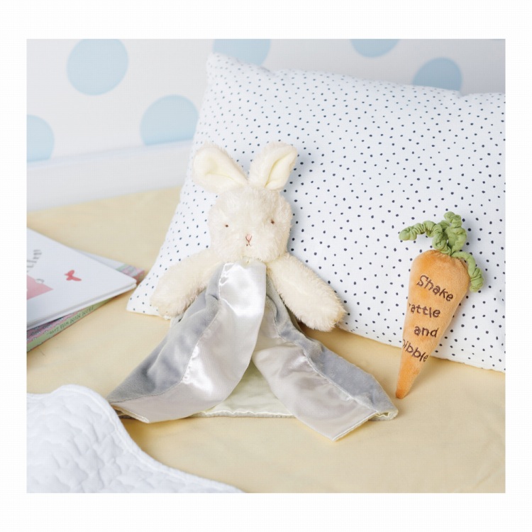 ミニサイズのおねんね抱っこ毛布とにんじんラトルをセットにしました。