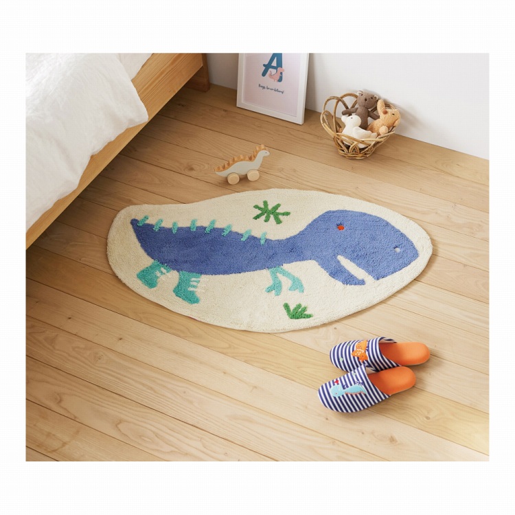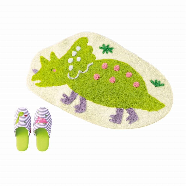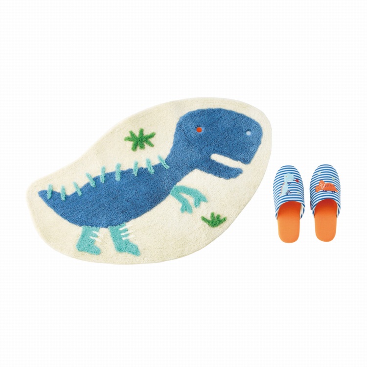 まるでおうちに恐竜がいるようなかわいらしいマットとスリッパのセットです。
