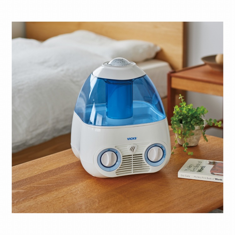 気化式なので加湿しすぎず、水量が一目でわかるスケルトンタンク。