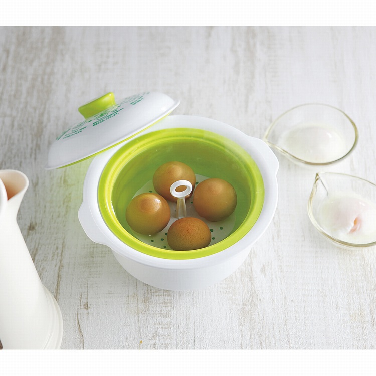 沸かしたお湯を入れるだけで、一度に4個までおんせんたまごが作れます。