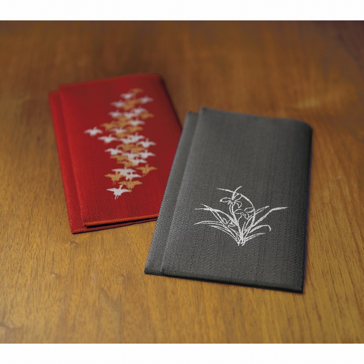 慶事用には千羽鶴の金彩を施し、弔事用にはランの花の銀彩を施しました。