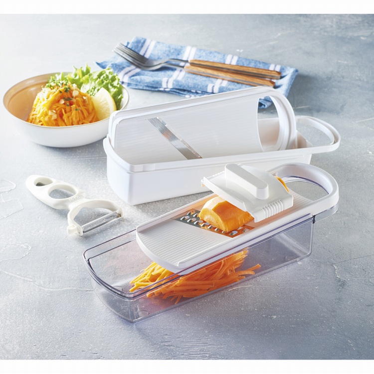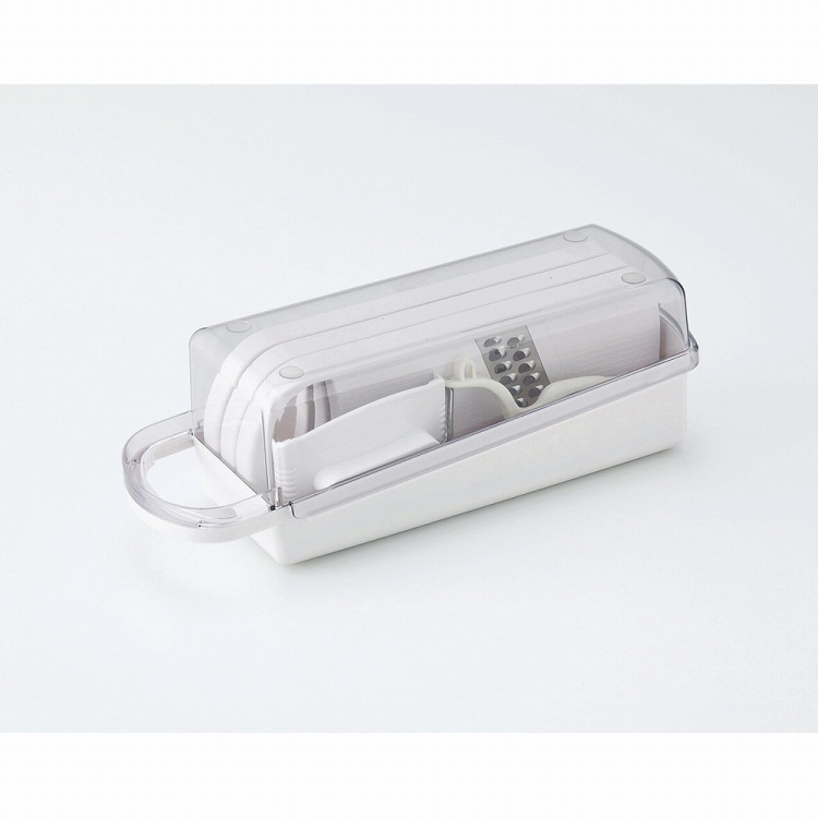 商品内容●商品:ケース(収納時/約8.4×26.6×高さ8.7cm)・スライサー・千切り器・おろし器・ピーラー・ホルダー各1