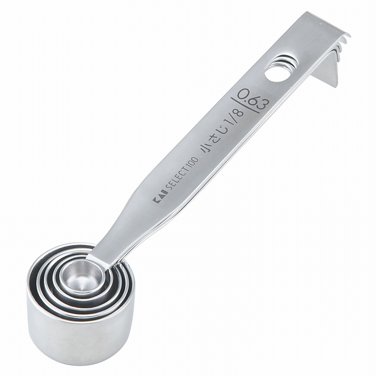 商品内容●商品:大さじ1(全長約14cm・15ml)・小さじ1(全長約14cm・5ml)・小さじ1/2(全長約13.5cm・2.5ml)・小さじ1/4(全長約13.5cm・1.25ml)・小さじ1/8(全長約13.5cm・0.63ml)各1